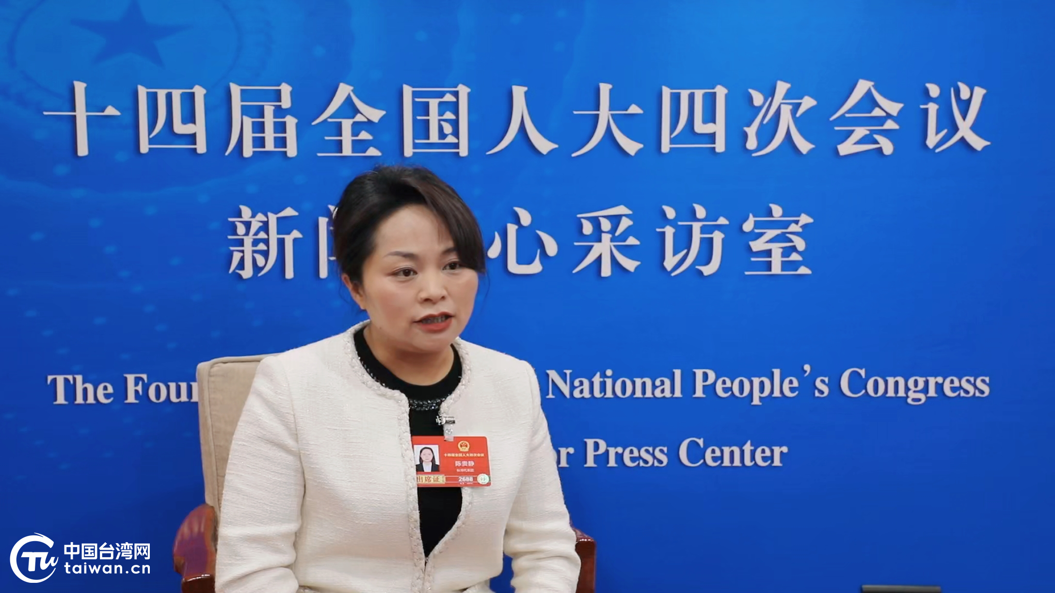 3月5日,十四届全国人大台湾省代表陈贵静接受媒体联访。(中国台湾网发)