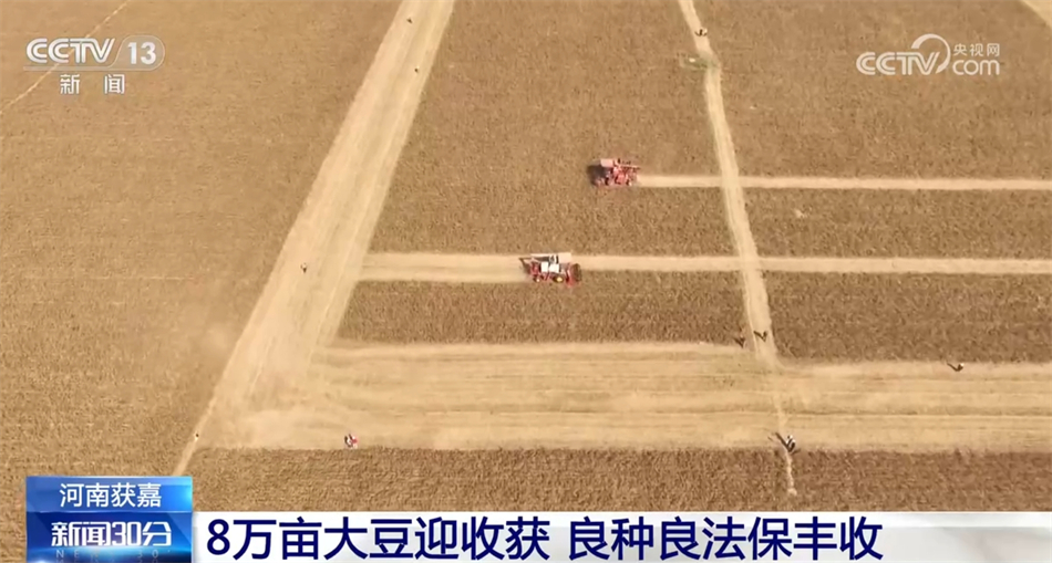 金秋十月,河南新乡市获嘉县8.25万亩大豆迎来了收获期,大豆田里收割机往来穿梭、有序作业。近年来,当地农业专家探索出的一套“良种+良法”相配套、“农机+农艺”相结合的高产优质栽培管理技术,为大豆高产夯实了技术保障。