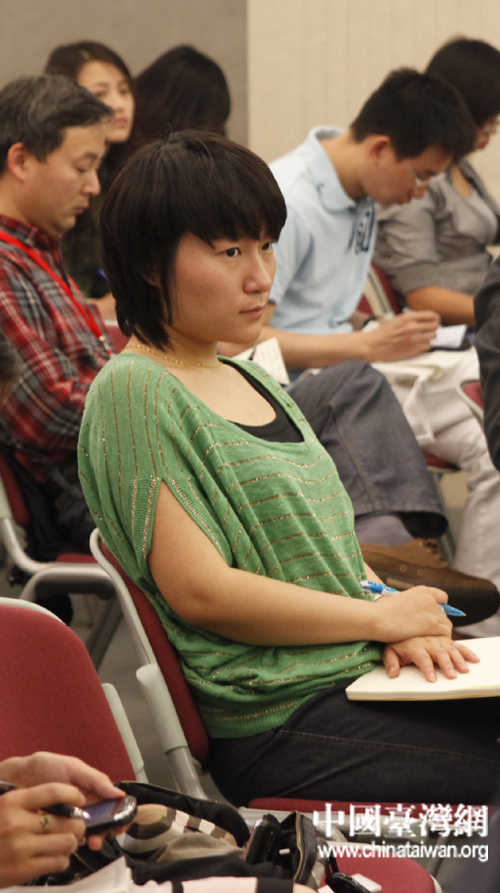 我网记者李徽在国台办新闻发布会现场。 (中国台湾网 陈佳慧 摄)