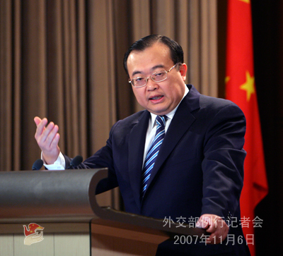 2007年11月6日下午,外交部发言人刘建超举行例行记者会,就六方会谈、缅甸问题、巴基斯坦局势、美国防部长访华等回答记者提问。