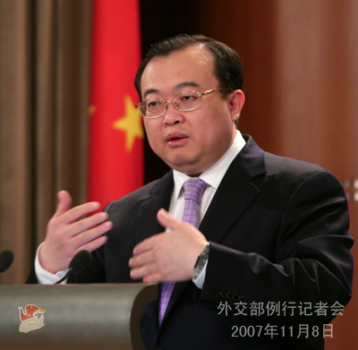 2007年11月8日下午,外交部发言人刘建超举行例行记者会,就六方会谈、巴基斯坦局势、阿富汗发生自杀性炸弹袭击、伊朗核问题等回答记者提问。