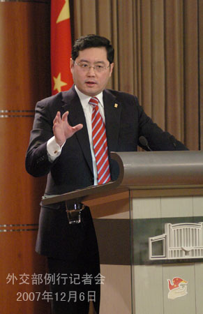 2007年12月6日,外交部发言人秦刚举行例行记者会,就六方会谈、伊朗核问题、中日关系、联合国气候变化会议等回答记者提问。