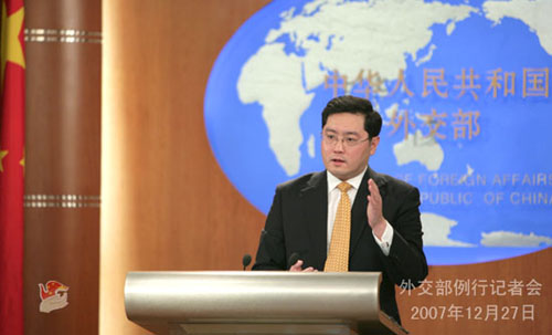 2007年12月27日,外交部发言人秦刚举行例行记者会,就日本首相福田访华及六方会谈等问题答记者问。