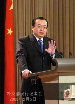 2008年2月5日下午,外交部发言人刘建超主持例行记者会,就日本饺子事件、朝核、南沙群岛、东海油气田、乍得撤侨,中国南方雪灾等问题回答记者提问。