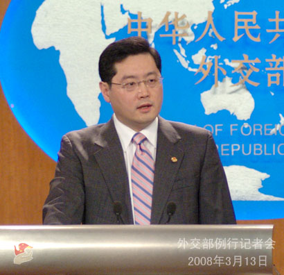 2008年3月13日下午,外交部发言人秦刚举行例行记者会,就东海问题、中国警方赴日调查饺子事件、外国记者在华采访、秘鲁总统和韩国外长访华等答记者问。