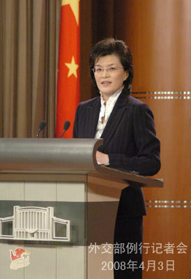 2008年4月3日下午,外交部发言人姜瑜举行例行记者会,就北京奥运会及火炬传递、穆沙拉夫总统访华、伊朗核等问题答问。