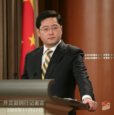 2008年11月27日下午,外交部发言人秦刚举行例行记者会,就中法、中欧关系,六方会谈,印度孟买发生爆炸事件,泰国局势等答问。