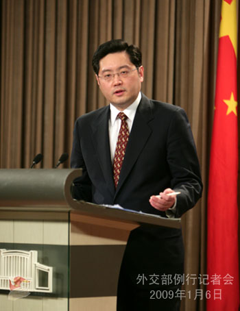 2009年1月6日下午,外交部发言人秦刚举行例行记者会,主要就加沙局势等答记者问。