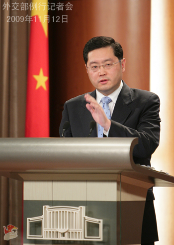 2009年11月12日,外交部发言人秦刚举行例行记者会。答问如下。