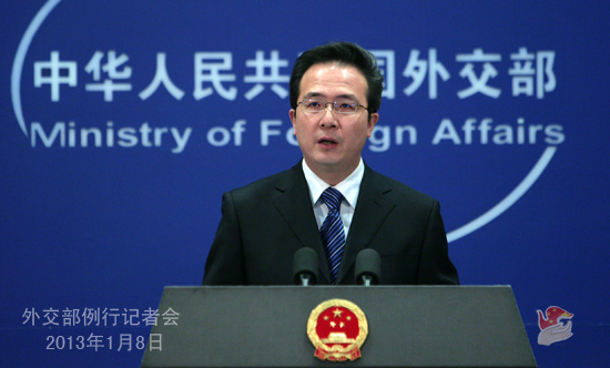 2013年1月8日,外交部发言人洪磊主持例行记者会。