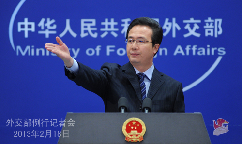 2013年2月18日,外交部发言人洪磊主持例行记者会。