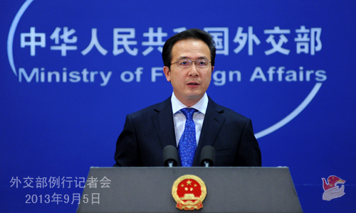 2013年9月5日,外交部发言人洪磊主持例行记者会。