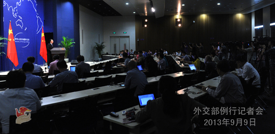 2013年9月9日,外交部发言人洪磊主持例行记者会。
