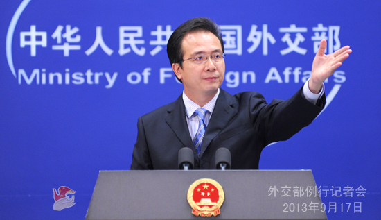 2013年9月17日,外交部发言人洪磊主持例行记者会。