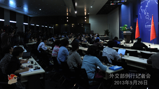 2013年9月26日,外交部发言人洪磊主持例行记者会。