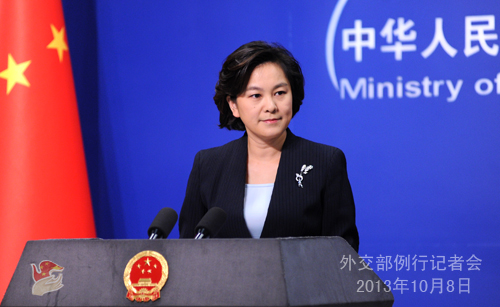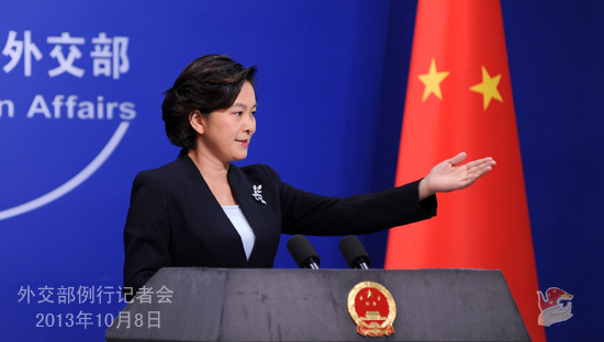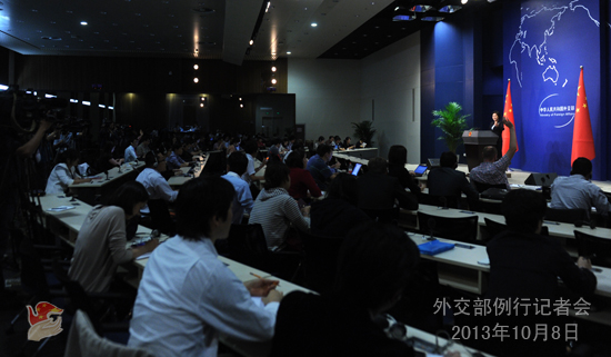2013年10月8日,外交部发言人华春莹主持例行记者会。
