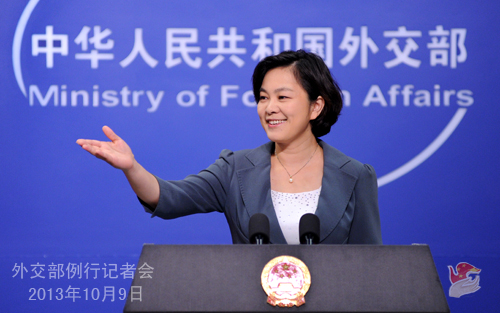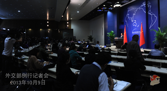 2013年10月9日,外交部发言人华春莹主持例行记者会。