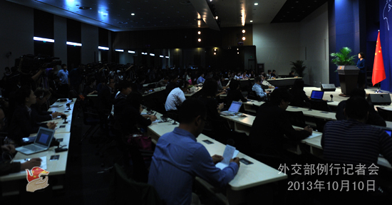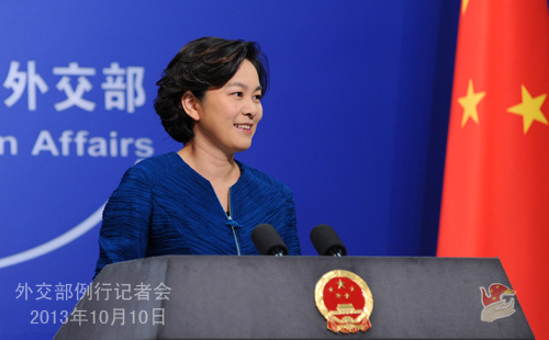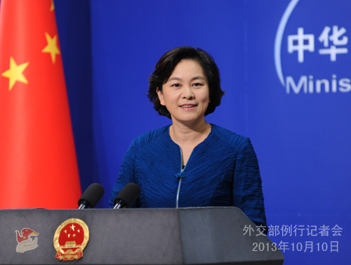 2013年10月10日,外交部发言人华春莹主持例行记者会。