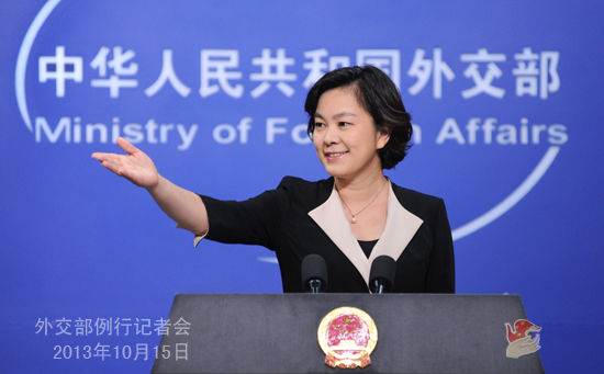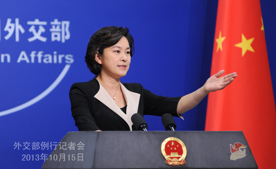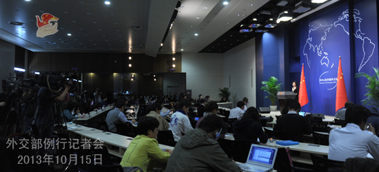 2013年10月15日,外交部发言人华春莹主持例行记者会。