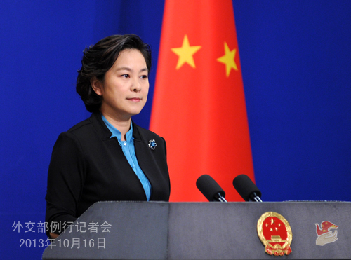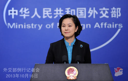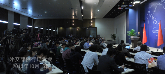 2013年10月16日,外交部发言人华春莹主持例行记者会。