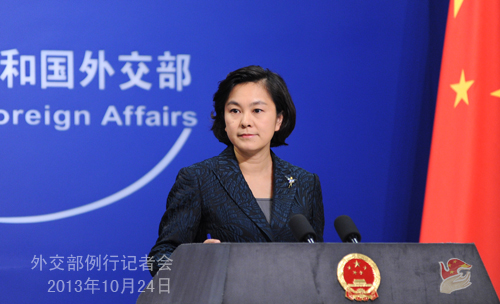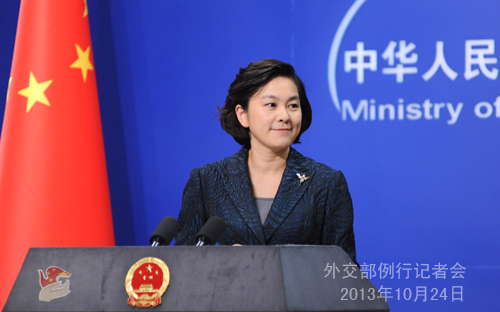 2013年10月24日,外交部发言人华春莹主持例行记者会。