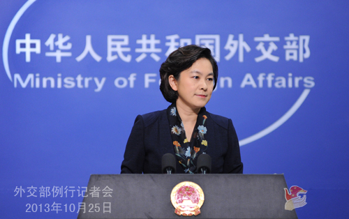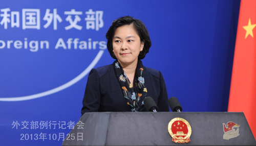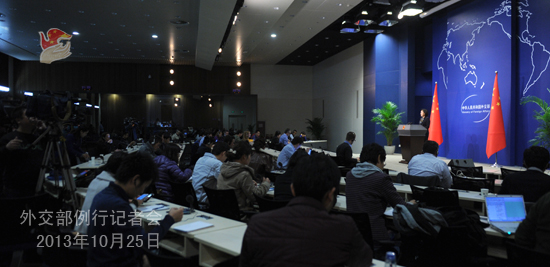 2013年10月25日,外交部发言人华春莹主持例行记者会。