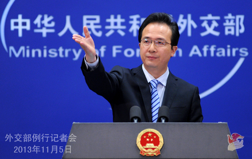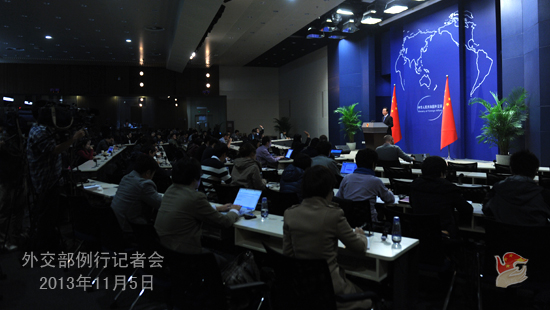 2013年11月5日,外交部发言人洪磊主持例行记者会。