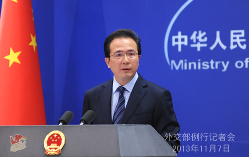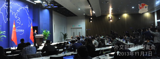 2013年11月7日,外交部发言人洪磊主持例行记者会。