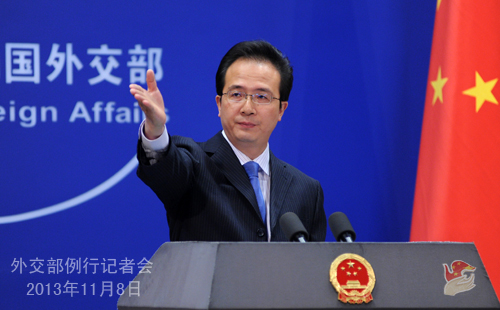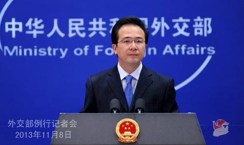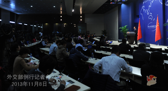2013年11月8日,外交部发言人洪磊主持例行记者会。