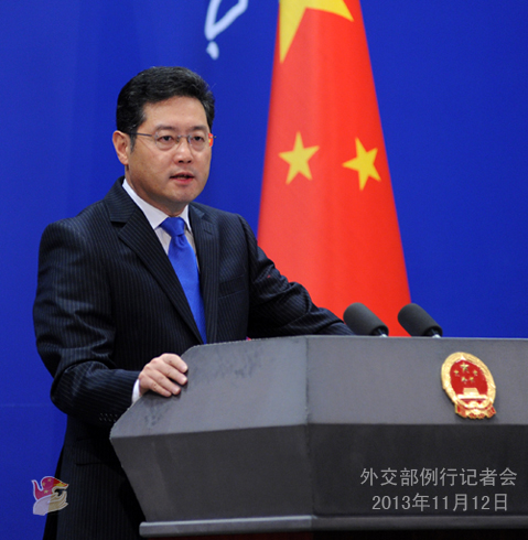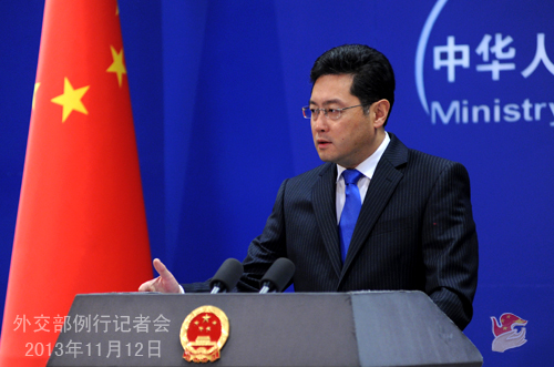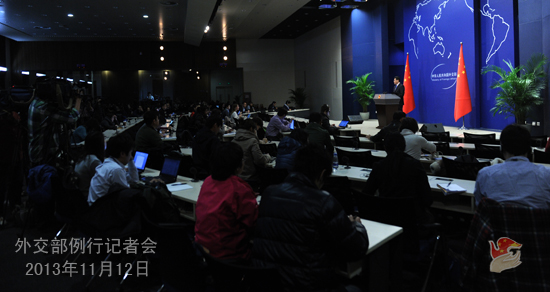 2013年11月12日,外交部发言人秦刚主持例行记者会。