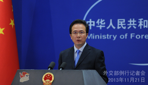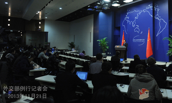 2013年11月21日,外交部发言人洪磊主持例行记者会。
