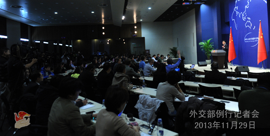 2013年11月29日,外交部发言人秦刚主持例行记者会。