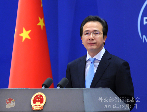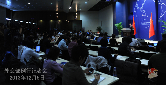 2013年12月5日,外交部发言人洪磊主持例行记者会。