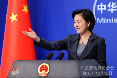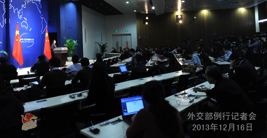 2013年12月16日,外交部发言人华春莹主持例行记者会。