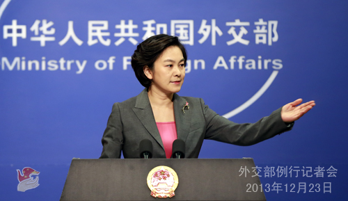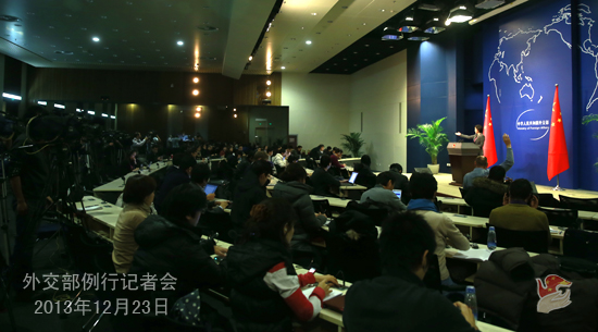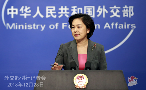 2013年12月23日,外交部发言人华春莹主持例行记者会。