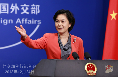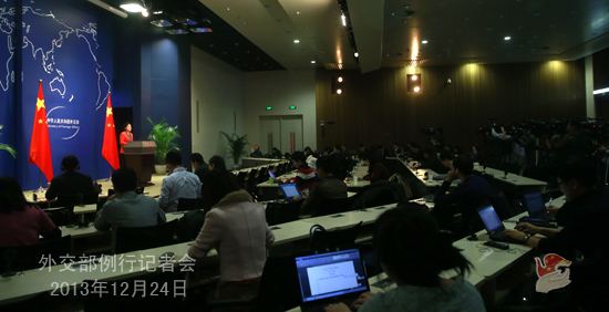 2013年12月24日,外交部发言人华春莹主持例行记者会。