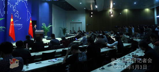 2014年1月3日,外交部发言人秦刚主持例行记者会。