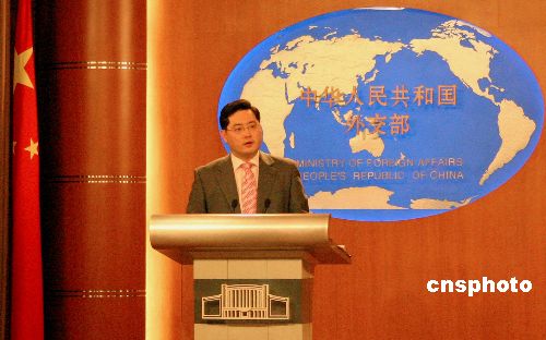 七月五日,中国外交部发言人秦刚在北京举行的外交部例行记者招待会上,就中日关系等问题回答中外记者的提问。 中新社发 刘颖 摄
