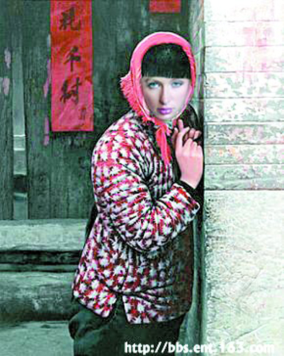 而网友就为她设计了很多有中国特色的服装,其中,有一张“纯朴的小希”特别引人注目。在这张作品里,希尔顿的头发被“染”成了黑色,穿着红底白色碎花小棉袄,头上还裹着块红布,害羞地倚在家门口的墙上,表情还略带几分期待。此情此景,让人情不自禁地联想起巩俐在《秋菊打官司》中的造型。但与“秋菊”相比,希尔顿显然要少几分倔强、多几分妩媚。 (王文) |