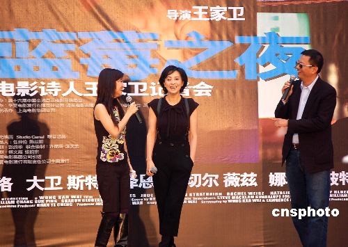 10月25日,第十六届中国金鸡白花电影节系列活动之“蓝莓之夜——电影诗人王家卫导演记者会”在美丽的金鸡湖畔举行。香港著名导演、编剧及监制王家卫携首部外语片《蓝莓之夜》莅临现场,作为第十六届金鸡百花电影节娱乐形象大使的刘嘉玲也来为王家卫导演助阵,为本届电影节增添璀璨星光。 中新社发 邱勇 摄