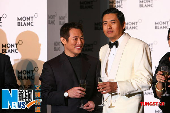 在台下,昨天周润发和李连杰几乎“零交流”。万宝龙老总在台上致辞时,周润发夫妇、李连杰以及李冰冰都在场下等候。周润发与众老板相谈甚欢后,即转身与李冰冰交谈,不时还手舞足蹈一番。而李连杰一直低调地站在后排,身材不高的他被人群淹没。只见李连杰时而与身边的老外简单攀谈几句,时而低头看着脚下发呆。两位巨星在台下始终没有交流,连对视都没有,唯一一次交流只是在台上寒暄几句。