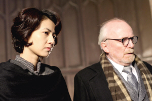 高圆圆所饰角色在教堂担任翻译,救助难民。 记者徐胤摄