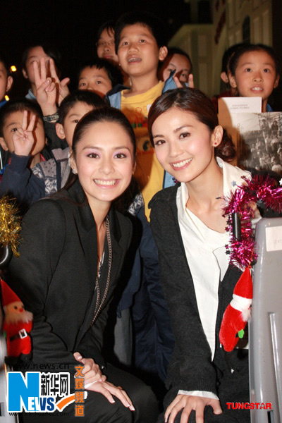 Twins出席“缤纷冬日节派对”,和小朋友们共同游戏之后,大家又一同踏上花车之旅。Twins虽然被冻得手脚发麻,却还是情绪高涨地敲起了小鼓,一副精神很好的样子。
