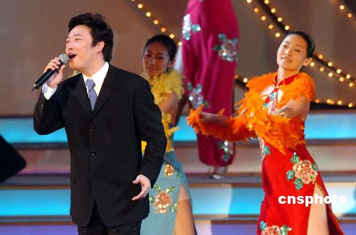 6月13日晚,为庆祝香港回归十周年,上海文广新闻传媒集团与香港无线电视联合举办《群星耀东方---走进香港演唱会》在香港文化中心露天广场举行。台湾歌星费玉清献唱歌曲「千里之外」。 中新社发 邓庆乐 摄