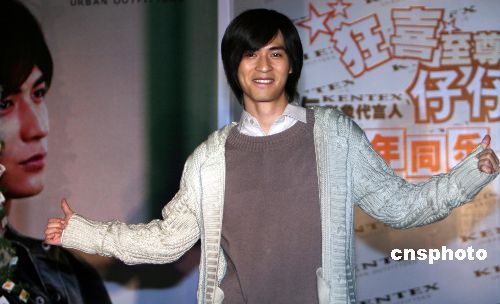 资料图;仔仔周渝民现身北京中关村名店运动城,参加“狂喜至尊·与仔仔新年同乐”活动。由于北京大雪,直到仔仔出场,距活动预计时间已推迟四小时,但寒冬未削减FANS的热情。迟来的仔仔连连道歉引得粉丝连连尖叫秩序一度失控。 中新社发 袁方 摄