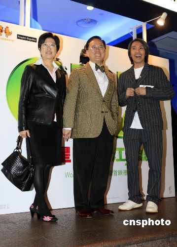 一月二十三日晚,周星驰身兼导演、编剧、演员,历时三年打造的电影《长江七号》在香港举行全球首映礼,百位政界、商界、演艺界嘉宾出席观看。特首曾荫权夫妇也出席首映礼,支持香港创意工业。中新社发 王丽南 摄