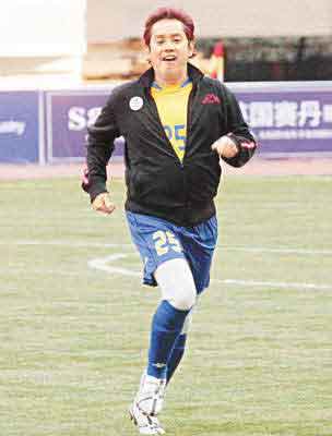 据香港太阳报报道,谭咏麟、陈百祥(阿叻)、曾志伟及许志安等以香港晨曦明星足球队的名义,昨天出战上海明星足球队,虽然气温只有6℃,但仍无损他们的战意,最后以4比3胜出。