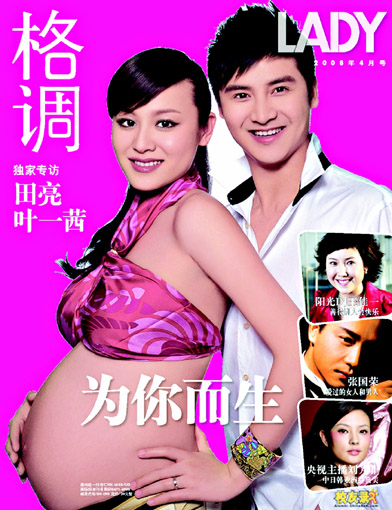 在举行婚礼4个月后,叶一茜终于公开怀孕事实,并拍摄了大肚照作杂志封面。照片上,叶一茜仅穿一件丝质抹胸,左手扶腰,右手搭在隆起的肚子上。身旁站着笑得一脸灿烂的田亮。