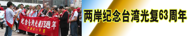 相关新闻:台各界纪念台湾光复63周年要求当局废除扭曲历史的教科书 台“中华统一促进党”集会纪念台湾光复63周年 |