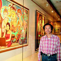 对此,魏庆发解释,画了20年的乡土景物,未来希望转型融合古今的题材,展现对时代的反思。在“科技年代”画中,佛像对使用计算机、手机的妙龄女孩注目.....《全文》 | |